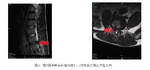 正值此次“新冠”疫情期間,學(xué)校延遲開學(xué),付某某前來在臺(tái)州做生意的姐姐家玩,被姐姐帶來我院骨三科門診就診,經(jīng)喻燦明副主任中醫(yī)師仔細(xì)詢問病史及查體后,考慮“腰椎間盤突出癥”,并推測(cè)腰椎側(cè)彎可能是由于腰椎間盤突出壓迫神經(jīng)引起保護(hù)性側(cè)彎,建議患者進(jìn)行腰椎磁共振檢查。檢查結(jié)束后,磁共振表現(xiàn)(圖3、4)證實(shí)了我們的診斷,建議患者及家屬可以考慮接受脊柱微創(chuàng)手術(shù)治療,并向患者詳細(xì)介紹了椎間孔鏡技術(shù),讓患者及家屬意識(shí)到椎間孔鏡技術(shù)是一項(xiàng)成熟的脊柱微創(chuàng)技術(shù),具有創(chuàng)傷小(切口約7mm)、療效好、見效快等優(yōu)點(diǎn)。