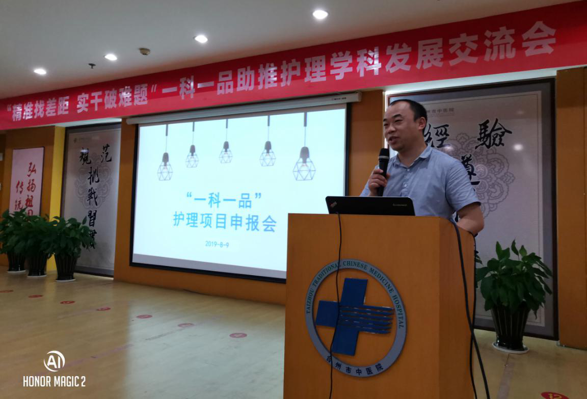 為了深入貫徹落實醫(yī)藥衛(wèi)生體制改革部署和衛(wèi)生部關(guān)于推廣優(yōu)質(zhì)護理服務(wù)相關(guān)文件精神,堅持“以病人為中心”的護理服務(wù)理念,圍繞“改革護理模式,履行護理職責(zé),提供優(yōu)質(zhì)護理服務(wù),提高護理水平”的宗旨,8月9日下午臺州市中醫(yī)院護理部在六樓多功能廳舉行了“精準(zhǔn)找差距,實干破難題”一科一品助推護理學(xué)科發(fā)展交流會。